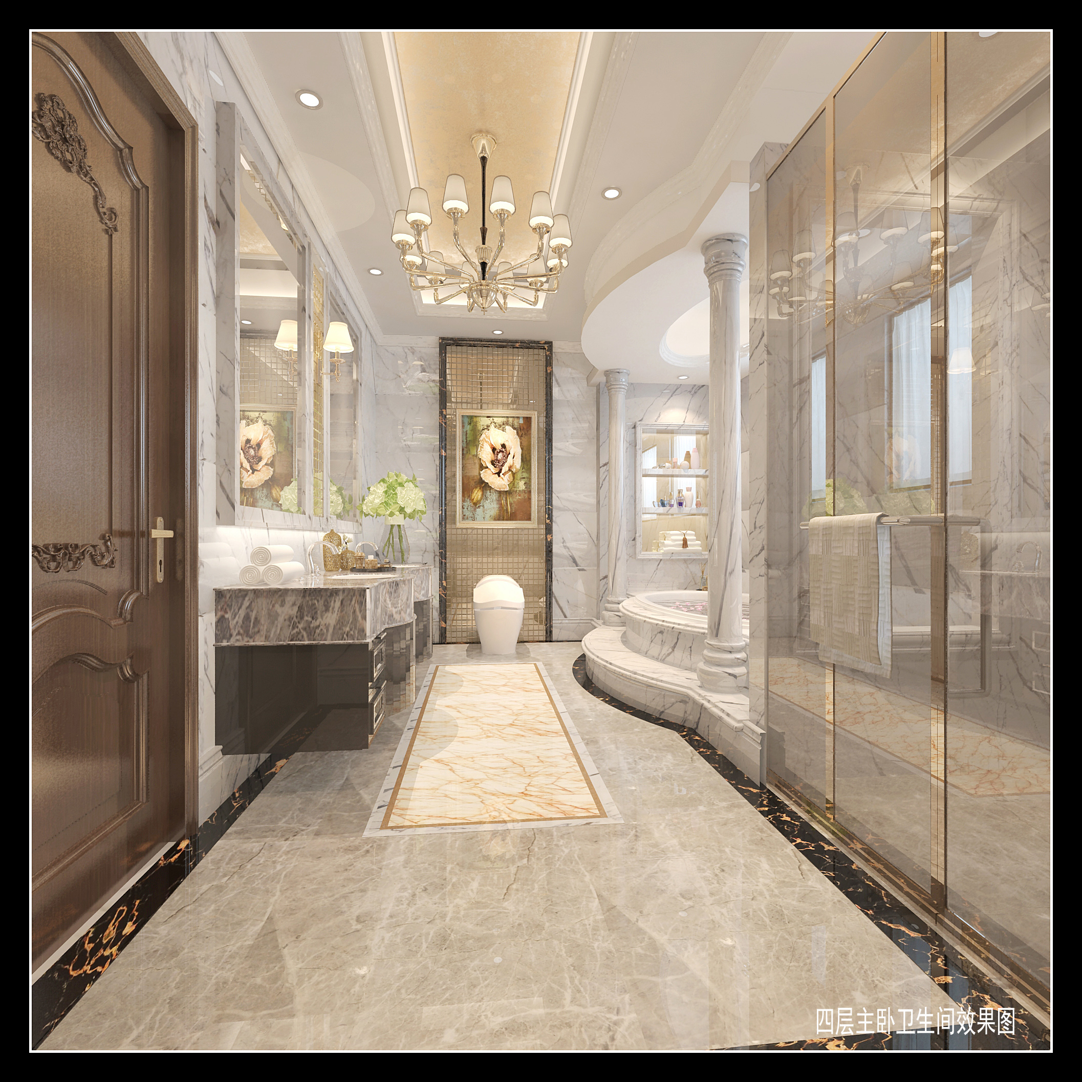 建筑面積450平,應業(yè)主大氣、清爽的設計要求,設計師采簡歐的空間設計風格,選取大面積石材、簡歐的各種線條造型,營造出獨特整體空間。從大處著眼,小處入手,不論是公共空間還是私密房間,總有亮點無不體現(xiàn)出層峰品味生活的追求。